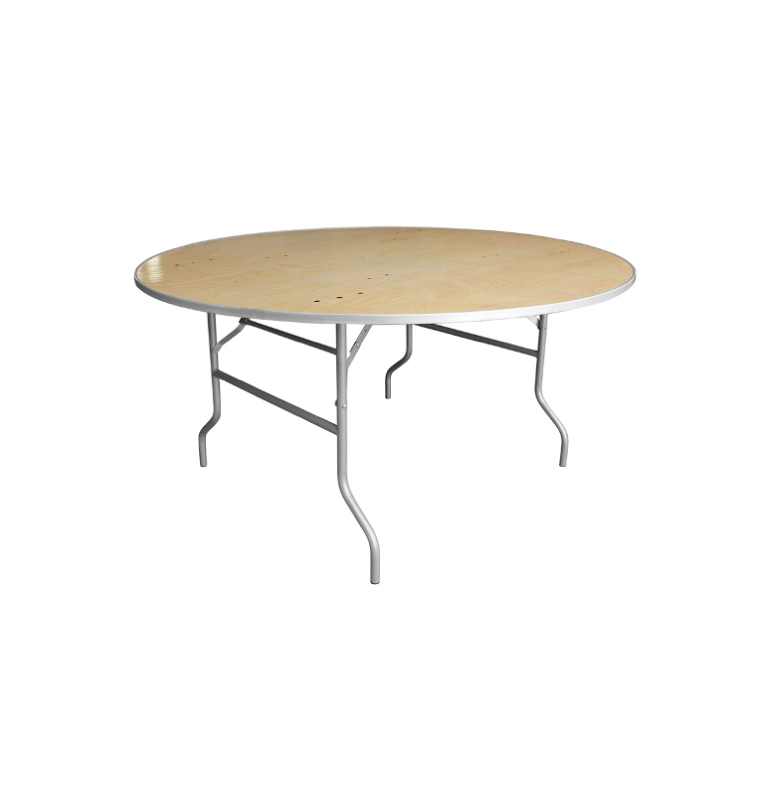 Table Pliante de banquet ronde en contreplaqué de 60 pouces, contour de protection en aluminium. 8-10 personnes.
